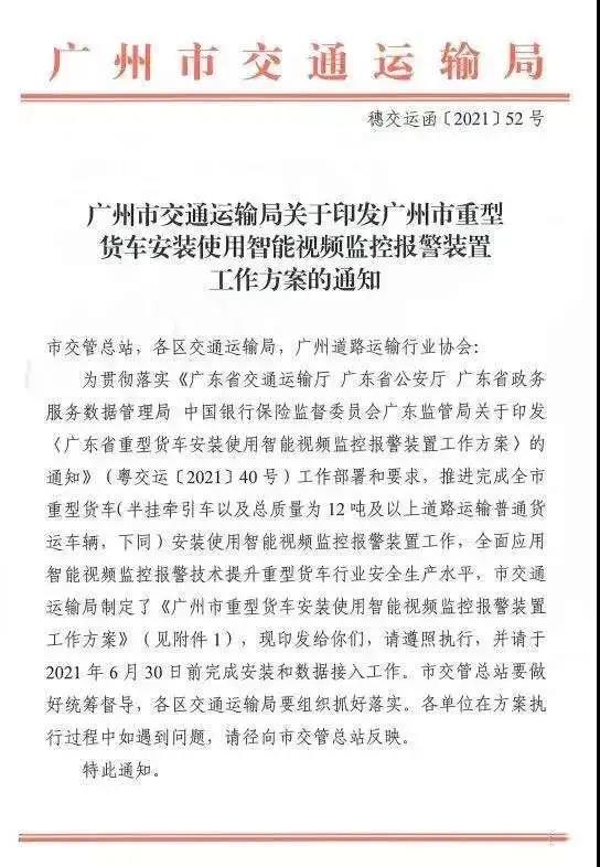公告指出,办理注册登记业务时,在2021年7月1日(不含)前已销售并开具机动车统一销售发票的第五阶段国家机动车大气污染物排放标准的重型柴油车,可于2021年10月1日(不含)前注册登记。●  3月1日起:粤籍重型货车都要安装视频监控2021年1月27日,广东省交通厅发布了《广东省重型货车安装使用智能视频监控报警装置工作方案》的通知。要求在2021年6月以前,广东省的重型货车要完成视频监控设备的安装工作。